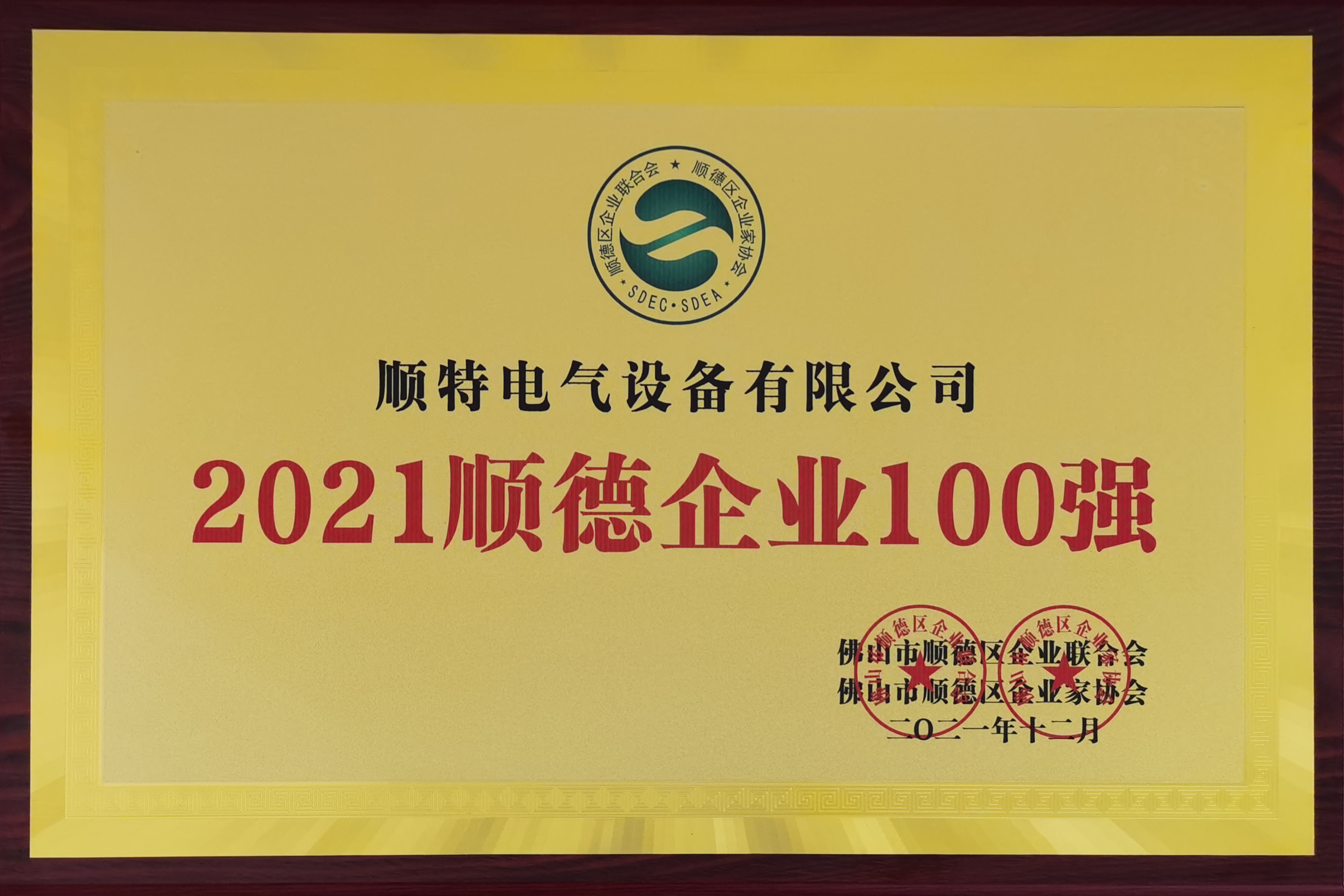 日前,佛山市順德區(qū)企業(yè)聯(lián)合會(huì)、佛山市順德區(qū)企業(yè)家協(xié)會(huì)發(fā)布了“2021順德企業(yè)100強(qiáng)榜單”,作為輸配電行業(yè)知名企業(yè),順特電氣榮登榜單。4月27日,易吉良總工程師代表公司,鄭重接收了“順德企業(yè)100百?gòu)?qiáng)”榮譽(yù)牌匾和證書(shū)。