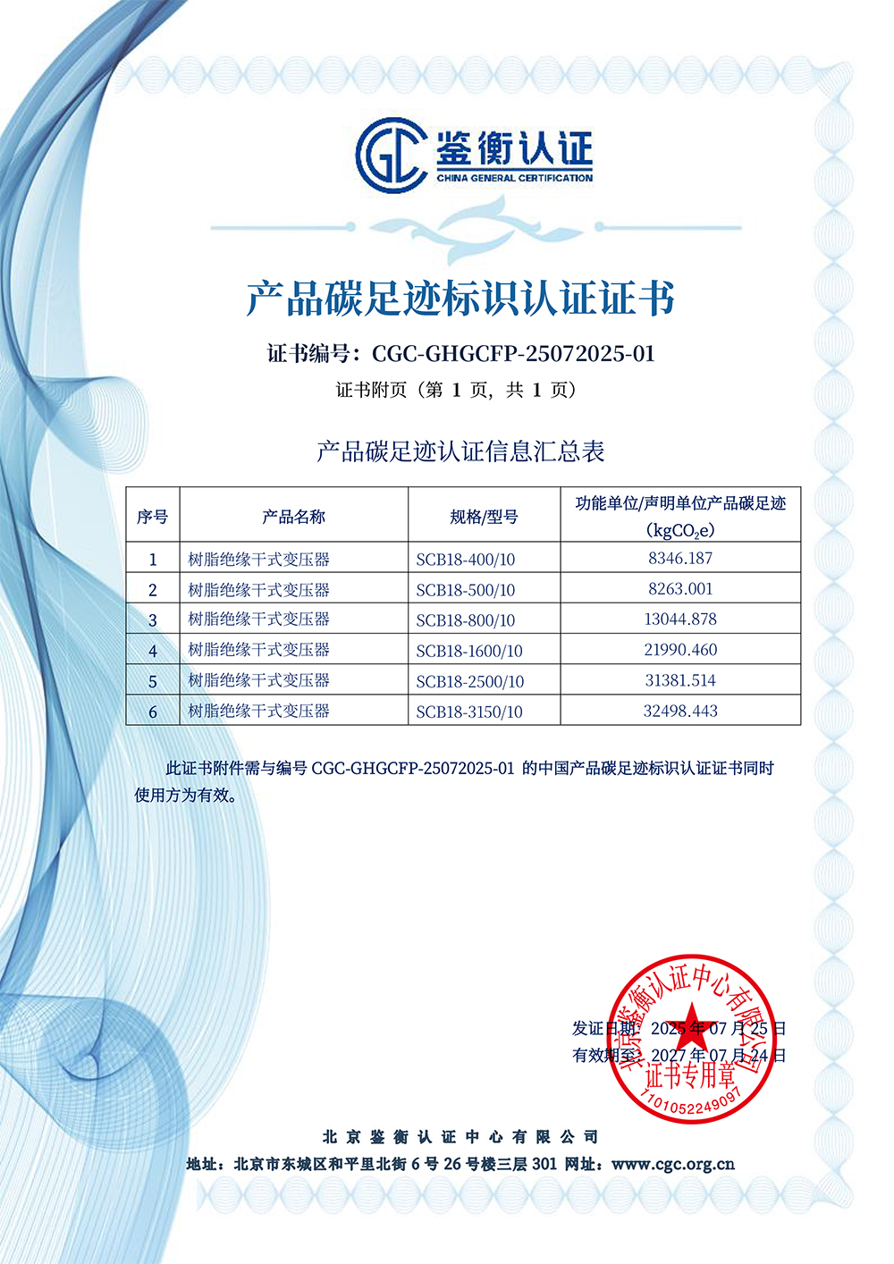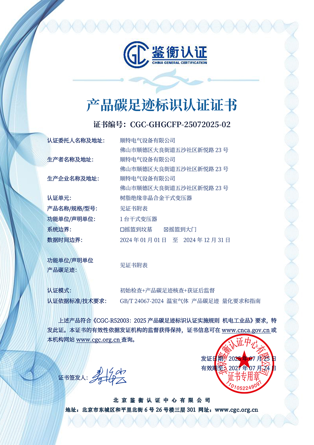 順特電氣設(shè)備有限公司取得產(chǎn)品碳足跡證書
